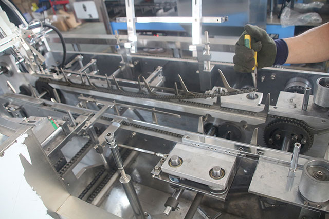 半自動裝盒機只有封盒功能的紙盒包裝機,又稱“封盒機”。半自動裝盒機,需用手工開盒、裝盒,再將裝有物料的盒子經(jīng)過機器封盒。自動裝盒機帶有自動開盒、入料、封盒功能的紙盒包裝機。全自動裝盒機帶有自動放料或與